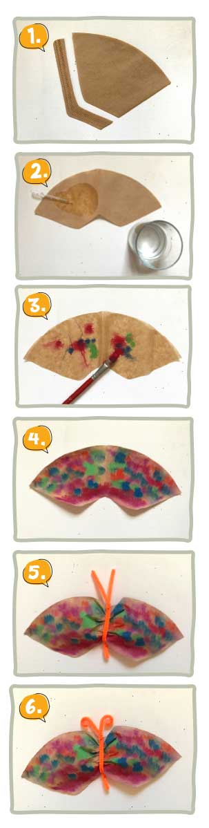 Bunte Schmetterlinge aus Kaffeefiltern