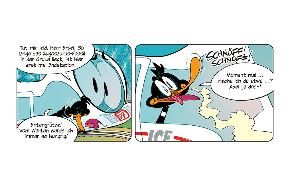 Auf einer Baustelle erlebt der kleine ICE mal wieder ein spannendes Abenteuer. Zusammen mit Simsala SUM entdeckt er ein versteinertes Skelett, das wie eine Mischung aus Dinosaurier und Zug aussieht. Dieses Skelett wird sofort zu einer Sensation. Bald stehen viele Leute Schlange, um den „Zugosaurus Rex“ zu sehen. Wird das Geheimnis dieses mysteriösen Fundes gelüftet? Finde es heraus in unserem spaßigen Comic-Abenteuer!