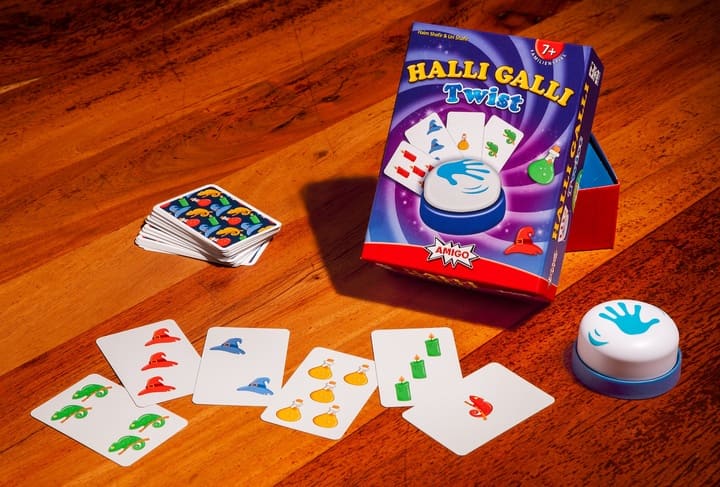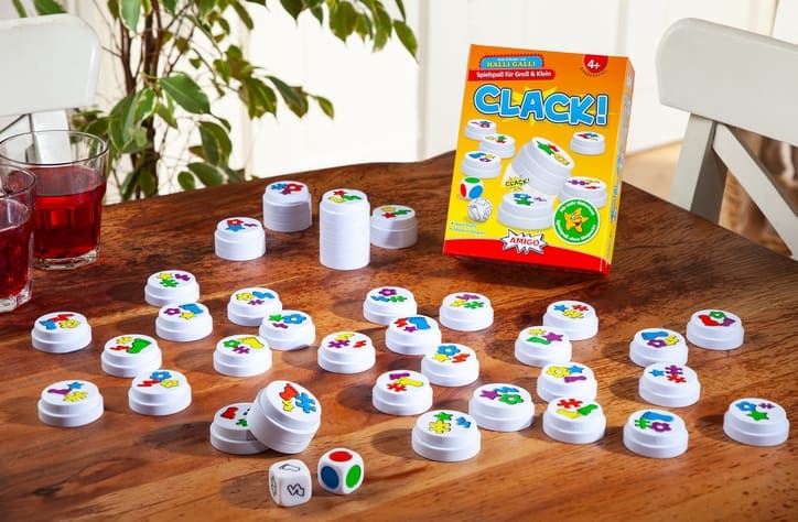 Jetzt wird’s bunt, laut und richtig lustig! AMIGO hat vier beliebte Spiele zu einem großen Familien-Set zusammengestellt – und du kannst eines davon gewinnen. „Halli Galli Twist“ bringt schnelle Reaktionen ins Spiel, bei „Piraten Kapern“ würfelst du dich durch spannende Abenteuer. „Clack!“ sorgt für rasante Stapelrunden und „Fröschis“ lädt zum fröhlichen Sammeln ein. Ein perfektes Paket für Spieltage, Familienabende oder Runden mit deinen Freundinnen und Freunden.