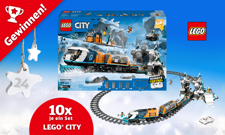 Mach mit und gewinne eines von zehn Polarexpress-Sets – vielleicht fährt bald ein LEGO® Zug durch dein Kinderzimmer! Einfach Formular ausfüllen und Daumen drücken!