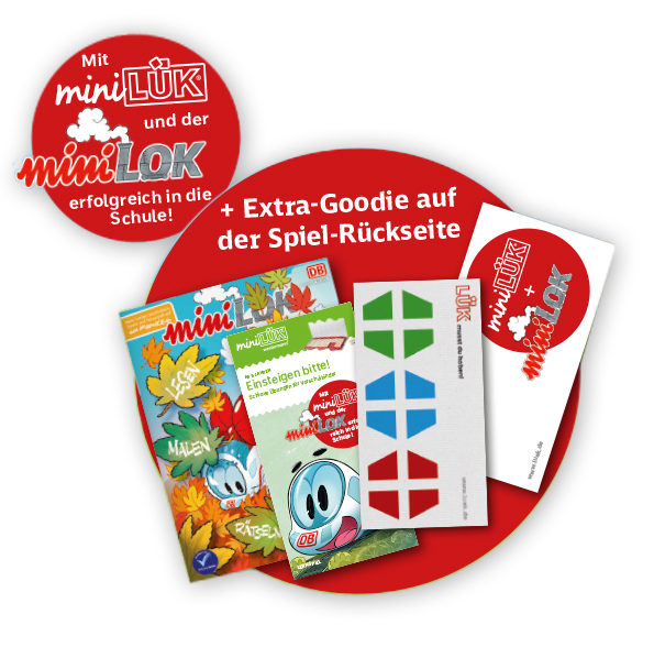 Von Oktober bis Dezember 2025 erhältst du bei uns an Bord ein cooles miniLÜK-Pappset – solange der Vorrat reicht. So wird deine Zugfahrt noch lustiger – mit Spielen, Rätseln und ganz viel Spaß! So geht’s: