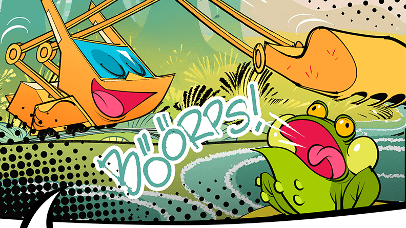 Sumi plant eine ICE-Strecke durchs Sumpfgebiet – doch Rülpskröten, Waschwombats & seltene Vögel stellen sich in den Weg. Mit dem kleinen ICE & Prof. Moranis findet sie eine Lösung: Natur schützen statt zerstören!
