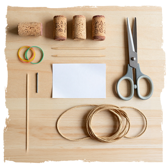 Wiederhole das mit Korken zwei und drei. - Mit Gummibändern festmachen