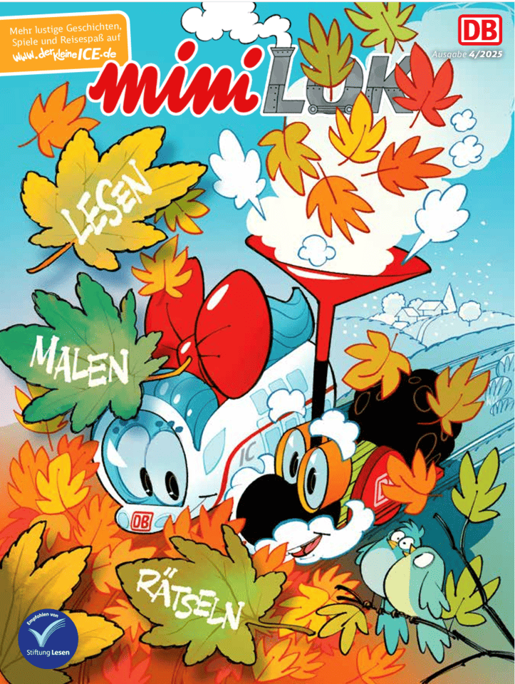 Ob spannende Nachtzüge, funkensprühende Maschinen oder das große Pfadfinderlager mit dem kleinen ICE – die neuen Kindermagazine sind voll mit Geschichten, Knobelaufgaben, Bastelideen und Rezepten. Hol dir deine LeseLOK oder miniLOK direkt im Bordbistro und erlebe herrliche Unterhaltung auf deiner Zugfahrt!