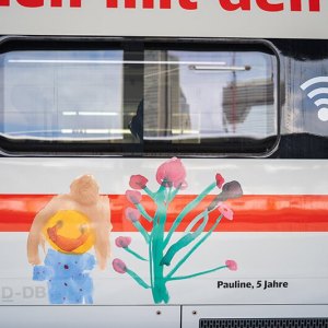 Der mit den Kindermotiven beklebte Zug fuhr von April bis Juli 2021 quer durch Deutschland.