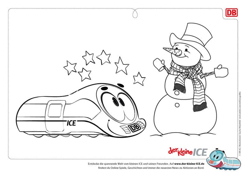 Klebe die Vorlage außen an dein Fenster. Von innen malst du die Linien mit Fensterstiften nach: zuerst den kleinen ICE, dann deine winterlichen Extras. Wenn du die Vorlage abnimmst, bleibt dein strahlendes Kunstwerk zurück – ganz persönlich und wunderbar weihnachtlich.